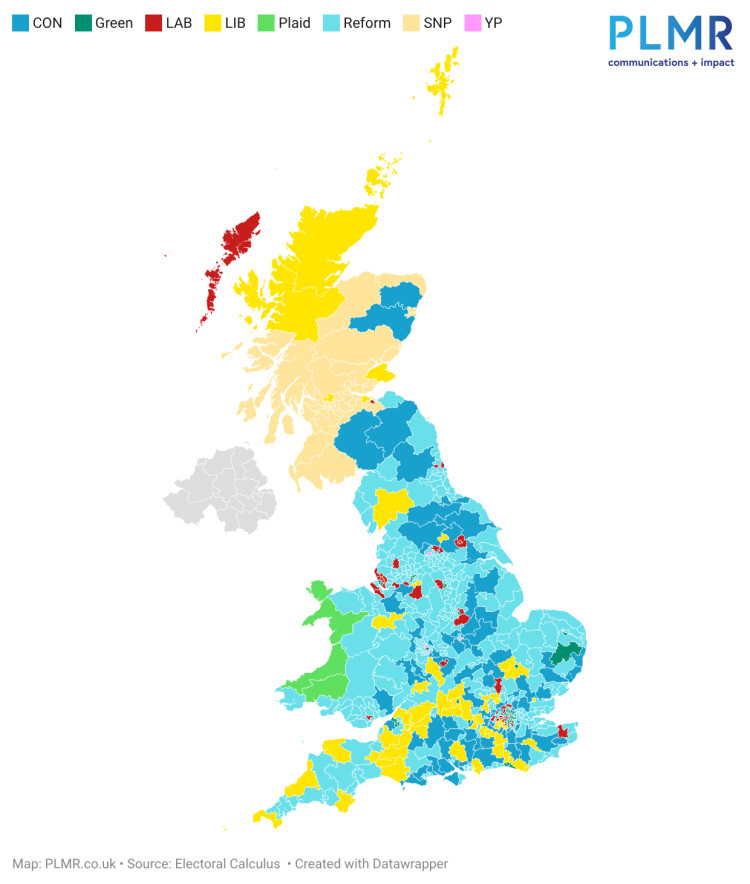 Martin Baxter, founder of Electoral Calculus, said: "Labour is suffering double trouble from the rise of Reform on the right, and the growth of the Greens on the left. But there is still some hope for Labour. The newly-launched Your Party is not polling as well