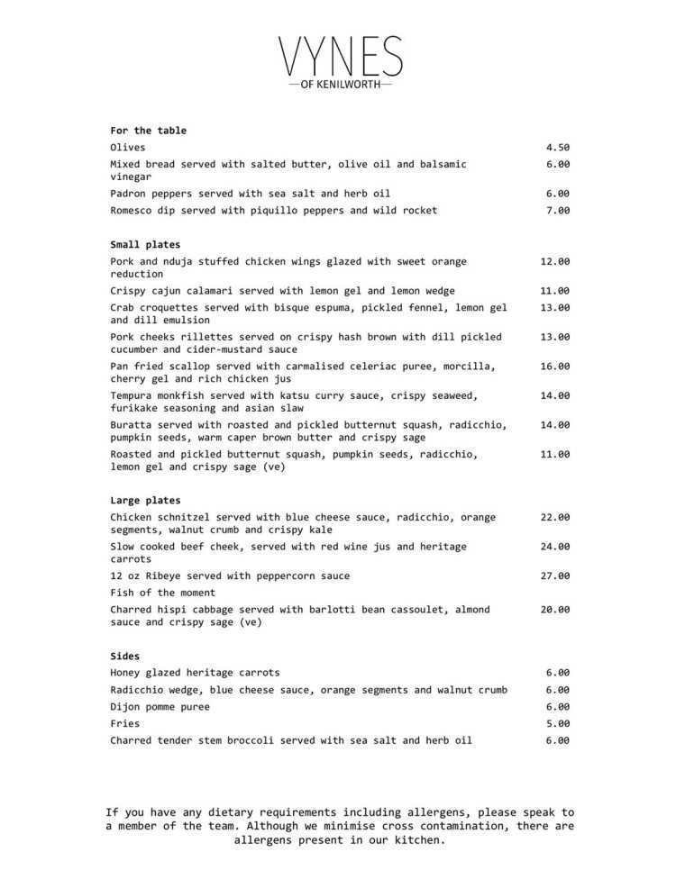 As well as the small plates and extended menu, Vynes will also be serving Sunday roasts which will include their special three-day gravy.