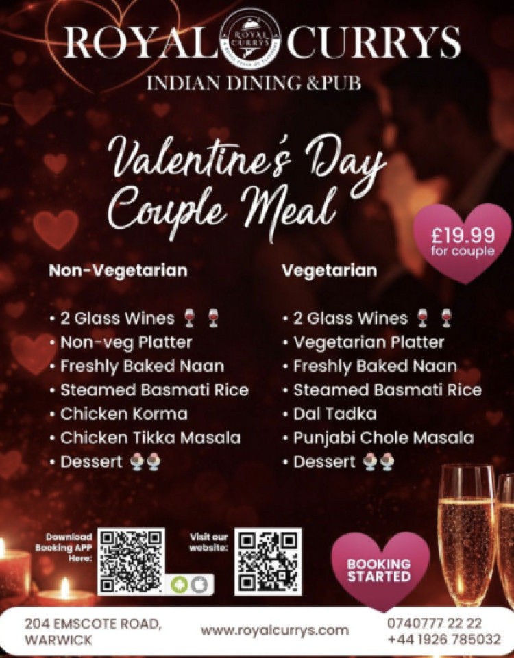 Nearby in Warwick, enjoy a special Valentines Day dinner at Warwickshire's new Indian eatery, Royal Currys located on Emscote Road.