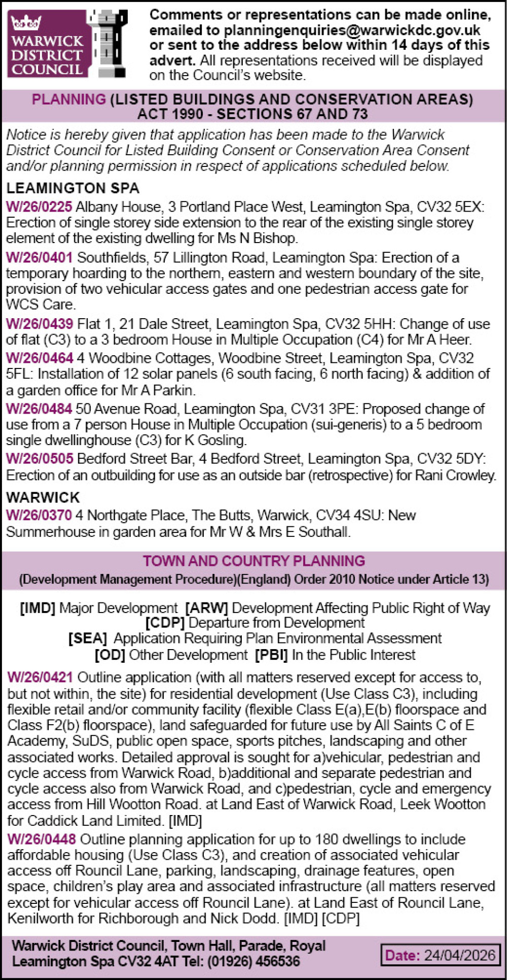 Warwick District Council - Planning Notices